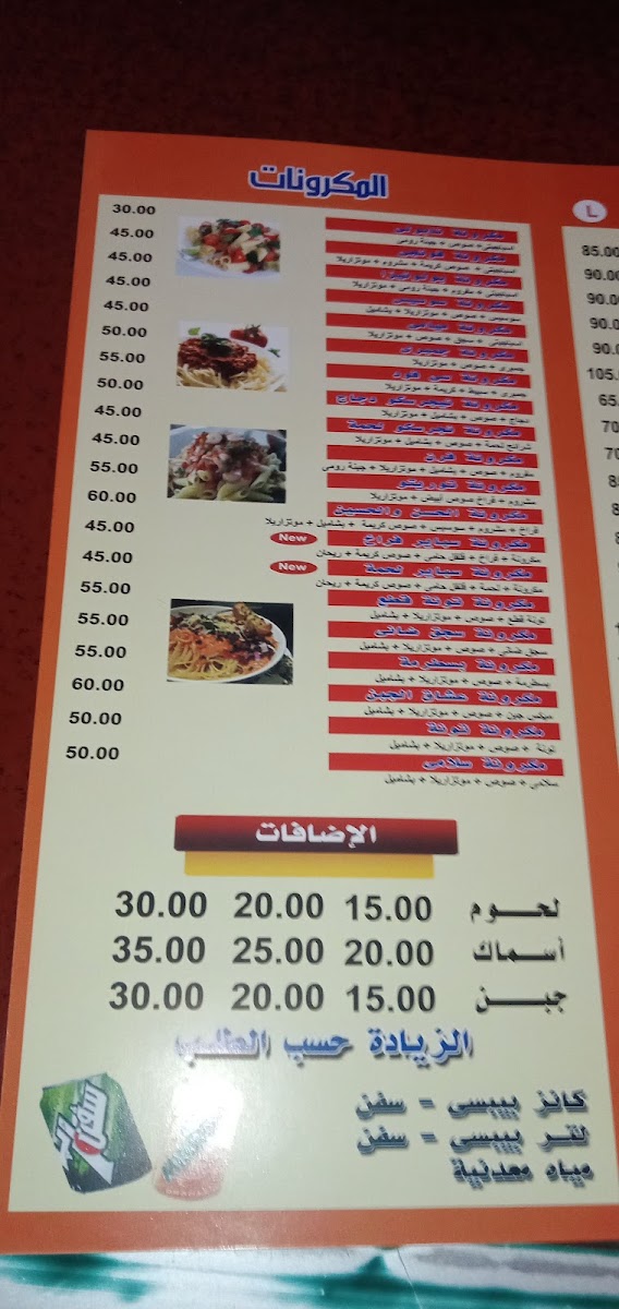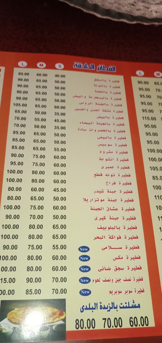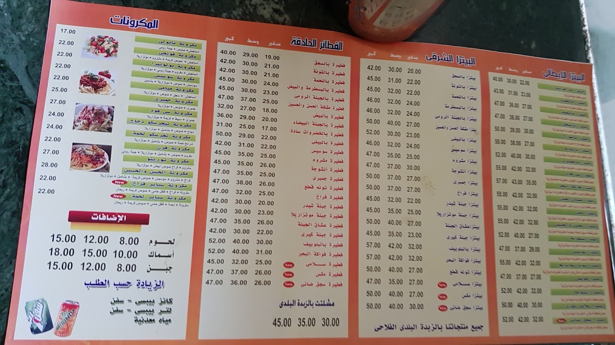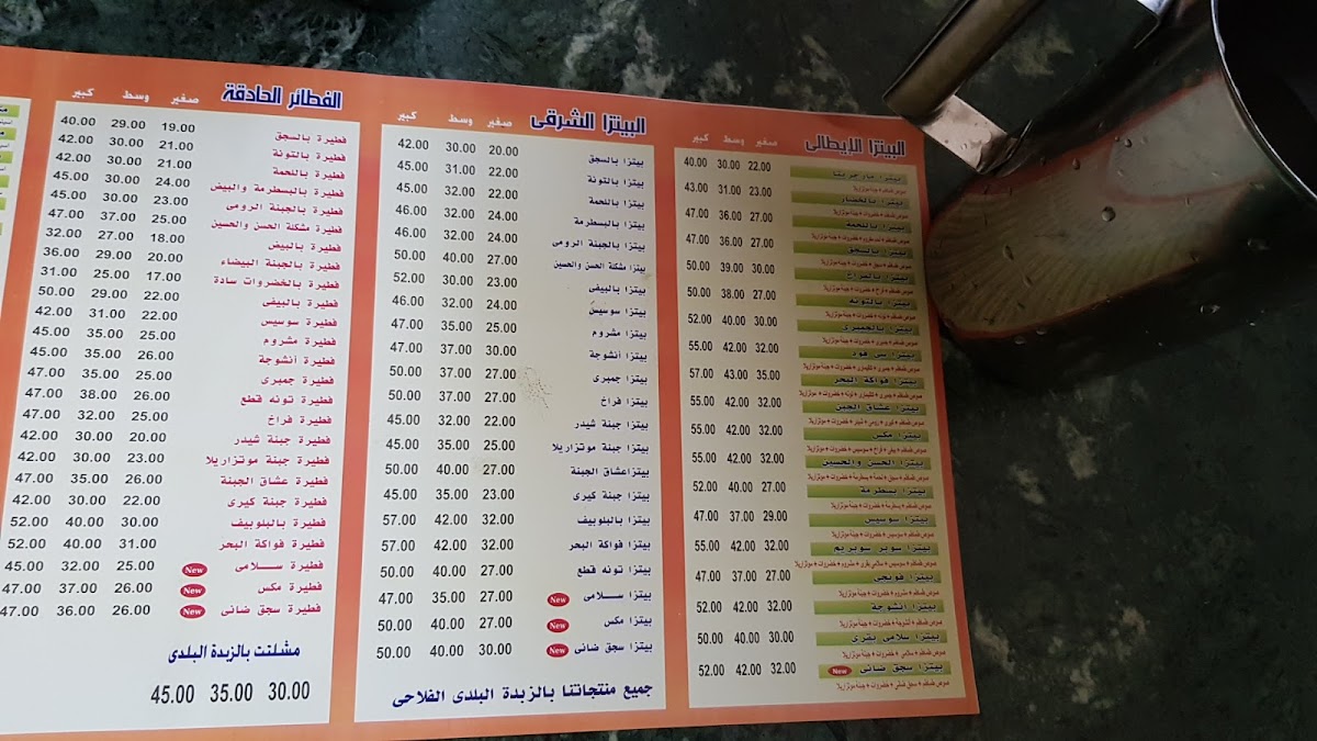 From a reviewer’s perspective, the menu at Orientale Pie & Pizza El Hassan & El Hussain feels focused and confident, emphasizing signature items rather than overwhelming variety. The standout choices clearly define the kitchen’s identity, starting with فطيره سوبر سوبريم, which represents the restaurant’s strength in hearty, generously topped pies that balance rich flavors with satisfying textures. This dish anchors the menu by showcasing a familiar concept executed with local character and bold seasoning. Equally important is بيتزا الحسن والحسين احلى بيتزا في مصر, a name that confidently sets expectations and positions the pizza as the pride of the house. It reflects the restaurant’s intent to deliver comfort food with personality, combining a well-prepared base, flavorful toppings, and an indulgent overall profile that appeals to both regular customers and first-time visitors. Taken together, these highlighted dishes summarize the menu’s direction: approachable, filling, and centered on crowd-pleasing pizzas and pies that emphasize taste over complexity. The pricing, where available, feels aligned with the generous portions and the casual dining experience, reinforcing the idea that this menu is designed for enjoyment and value rather than experimentation. Overall, the menu leaves a clear impression of a restaurant that knows its strengths and builds its reputation around a few well-loved, boldly presented items that define its culinary identity.